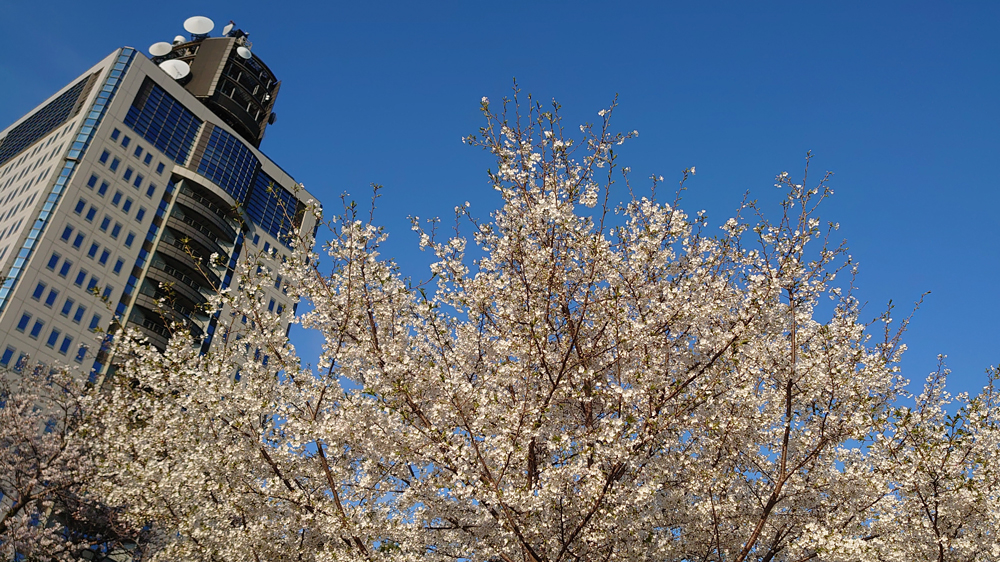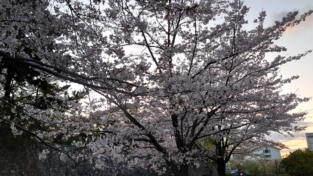 お堀の水面に映る桜の木々も趣深いものがあります。天気が良ければ広場から富士山も一望できます。