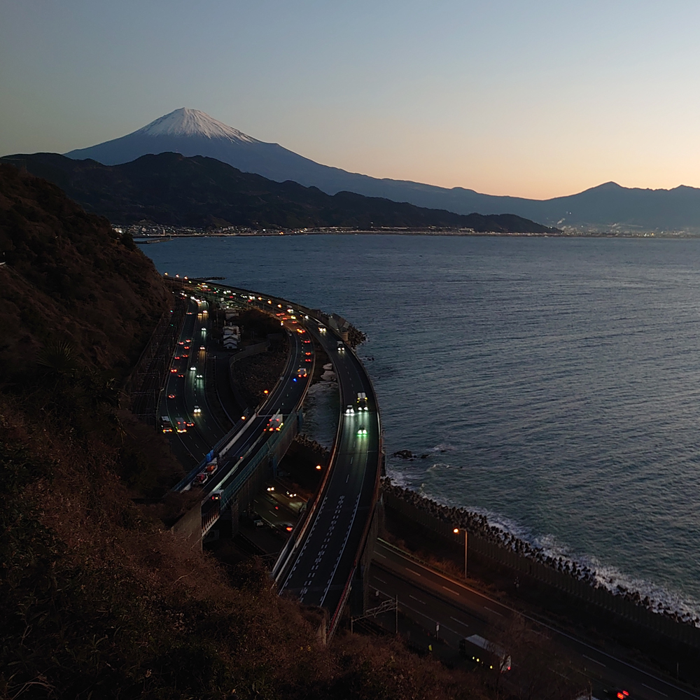 静岡市 葵区 追手町夜明けの富士:冬の薩埵峠(静岡市清水区由比西倉澤)