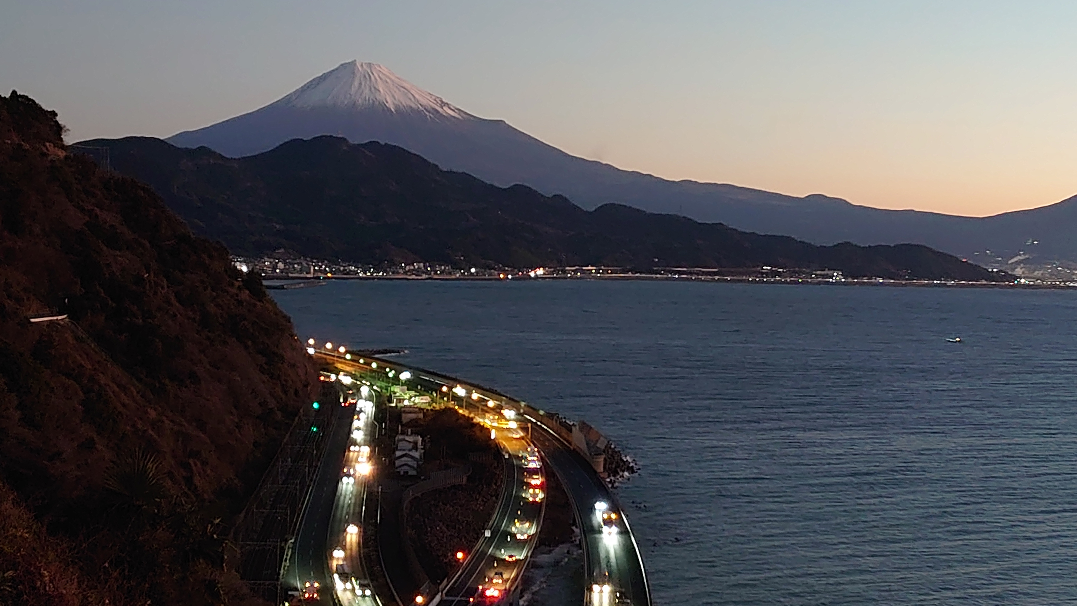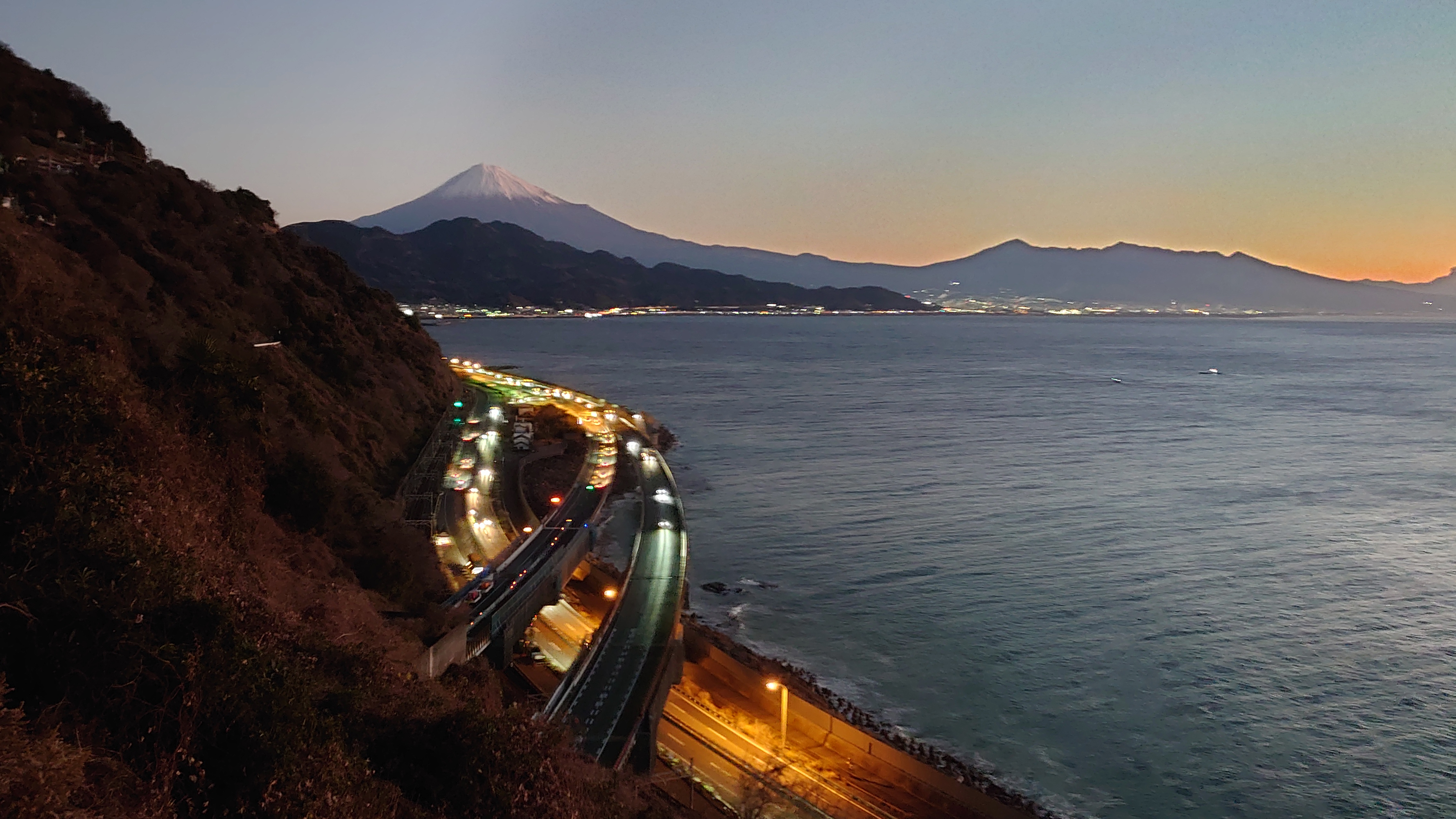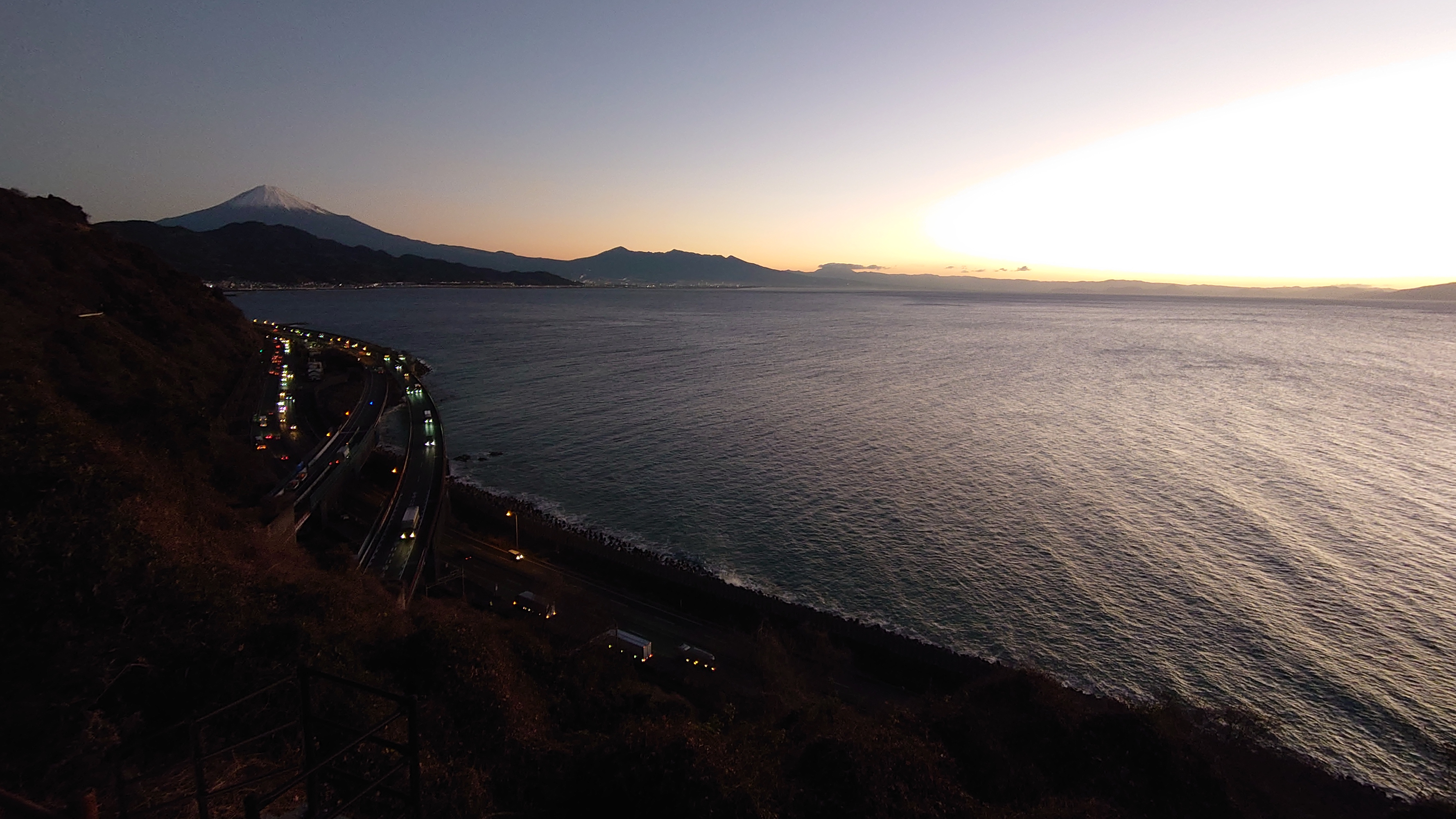 富士山と東名高速を眺められる名所として有名な絶景スポットです。色々なパンフレットなどにも使われる風景です。また、歌川広重の浮世絵「由比町・広重浮世絵」にも描かれた風情ある夜景スポットです。外灯はありませんので、駐車場からの一本道を懐中電灯片手に5分程歩くと木製展望デッキがあり、ここがビュースポットになります。